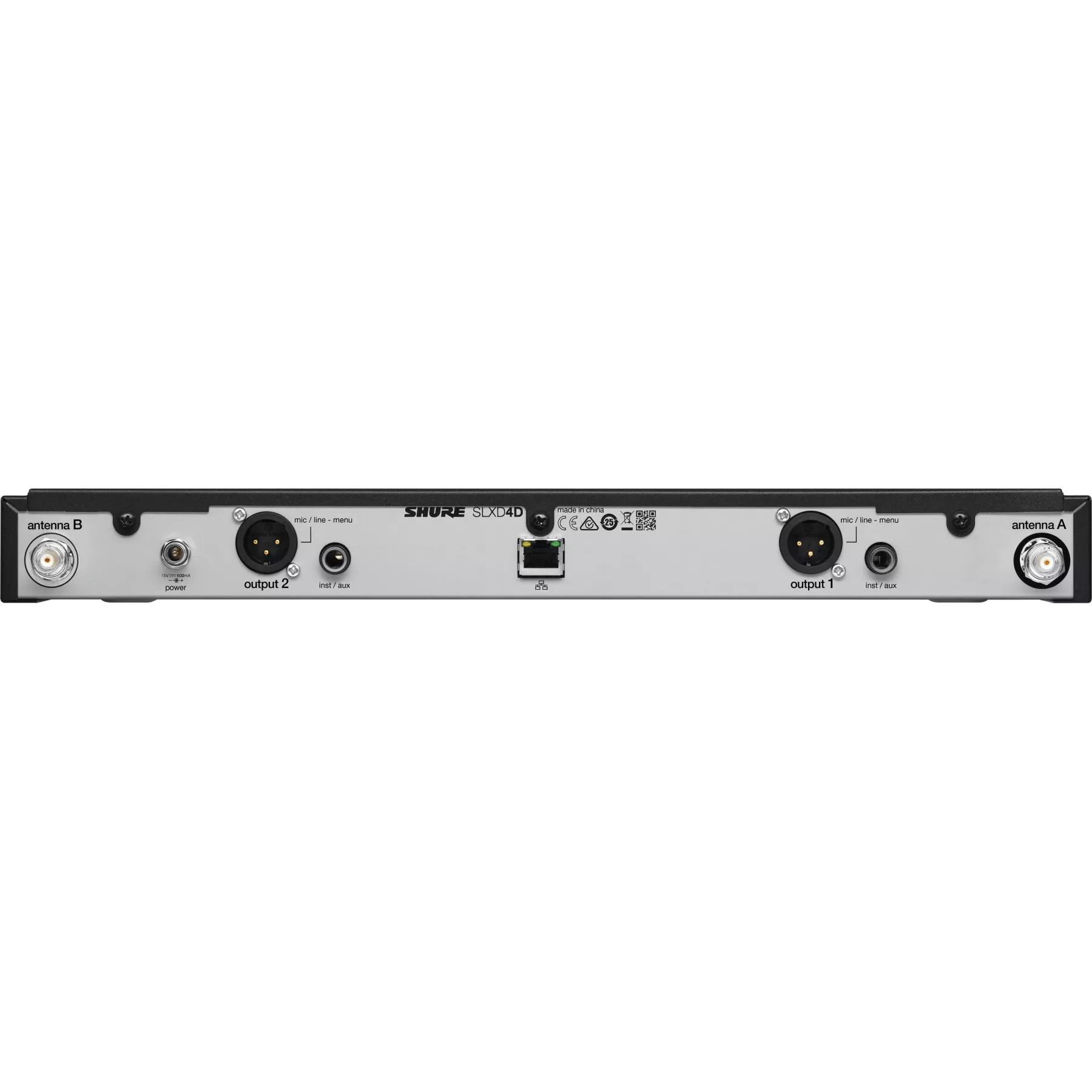 Цілометалевий стійковий приймач SLXD4D оснащений зрозумілими РК-екранами. У Shure SLXD4DE-H56 є можливість регулювання посилення, а також мікрофонні/лінійні XLR та 1/4" інструментальні виходи для кожного каналу. Додаткові функції включають автоматичне сканування частоти та ІЧ-синхронізацію, що дозволяє легко налаштувати передавач і приймач на ту саму частоту. Налаштування декількох систем здійснюється швидко та просто завдяки порту Ethernet, який дозволяє виконувати координоване сканування частоти для всіх підключених приймачів з одного місця.