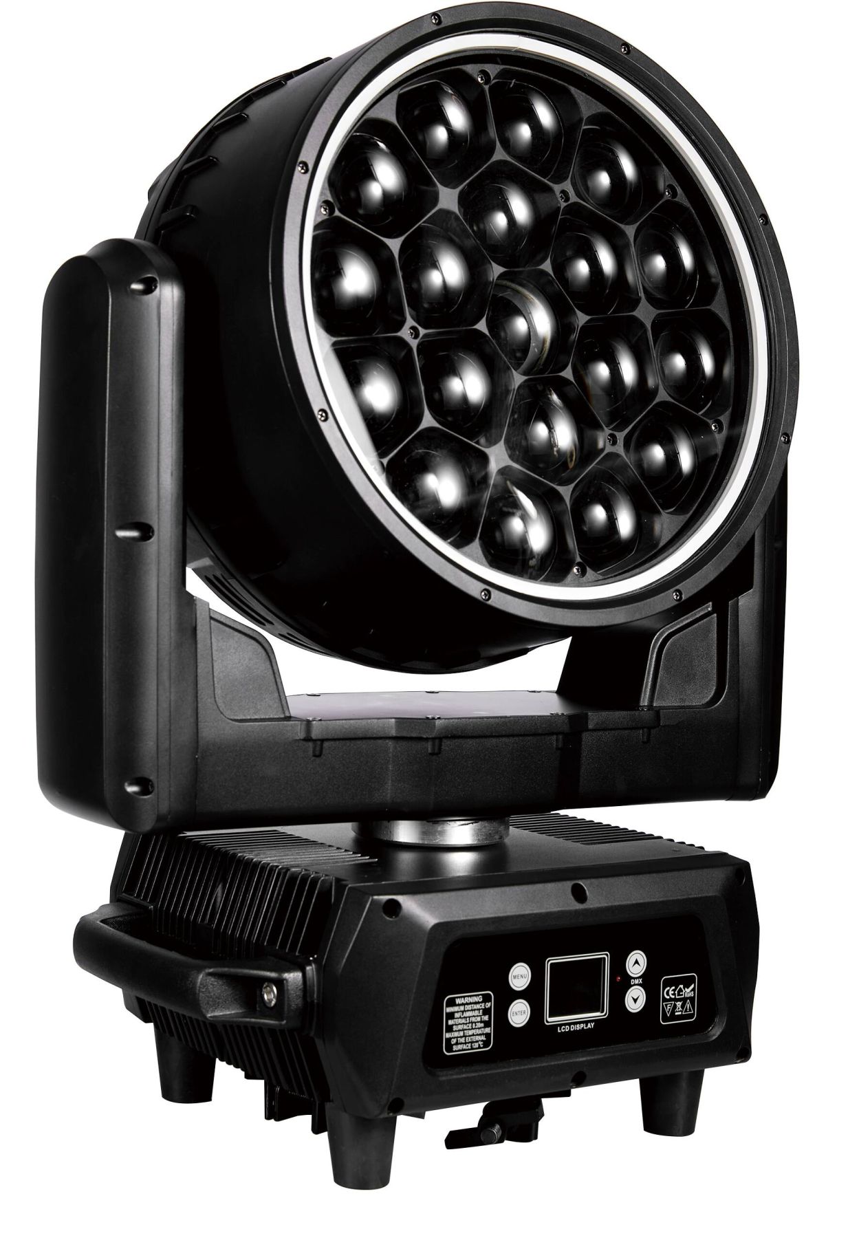 Багатофункціональний поворотний прожектор на 19 світлодіодах Osram по 40Вт з точною і насиченою передачею кольору. Прожектор має такі функції, як Wash, Wash-beam, а також ефект калейдоскопа, завдяки подвійній лінзі, що обертається. Широкий діапазон регулювання кута розкриття, піксельні шейпінг-ефекти і піксельний меппінг дають безмежні можливості для створення світлового шоу.