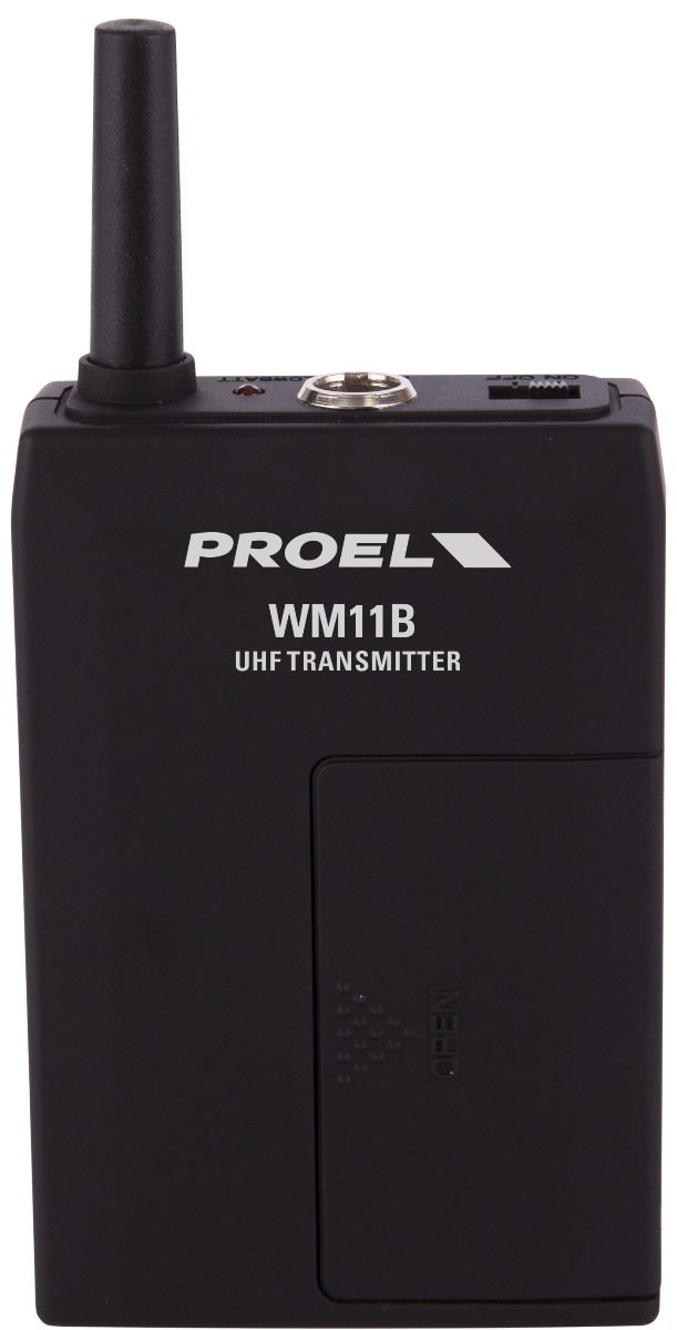 Радіосистема PROEL WM101H з приймачем WM101, поясним передавачем WM11B і наголовним мікрофоном.