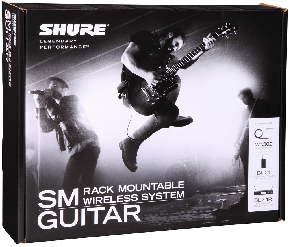 Комплект: одноканальний рековий приймач BLX4R, натільний передавач BLX1, інструментальний кабель WA302, блок живлення, 2 AA батарейки, міцний м'який чохол на блискавці, інструкція.