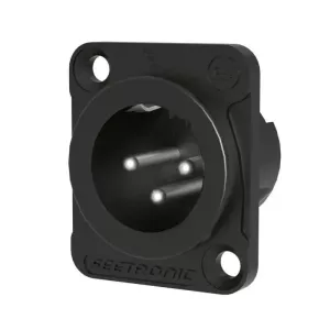 3-контактний штекерний роз’єм шасі XLR із литою під тиском оболонкою з цинкового сплаву, чорною оболонкою та посрібленими контактами D-подібна металева оболонка з інсталяційними розмірами D-типу промислового стандарту забезпечує сумісність встановлення Монтаж з передньої або задньої частини панелі Короткий осьовий розмір, економія місця та мала вага