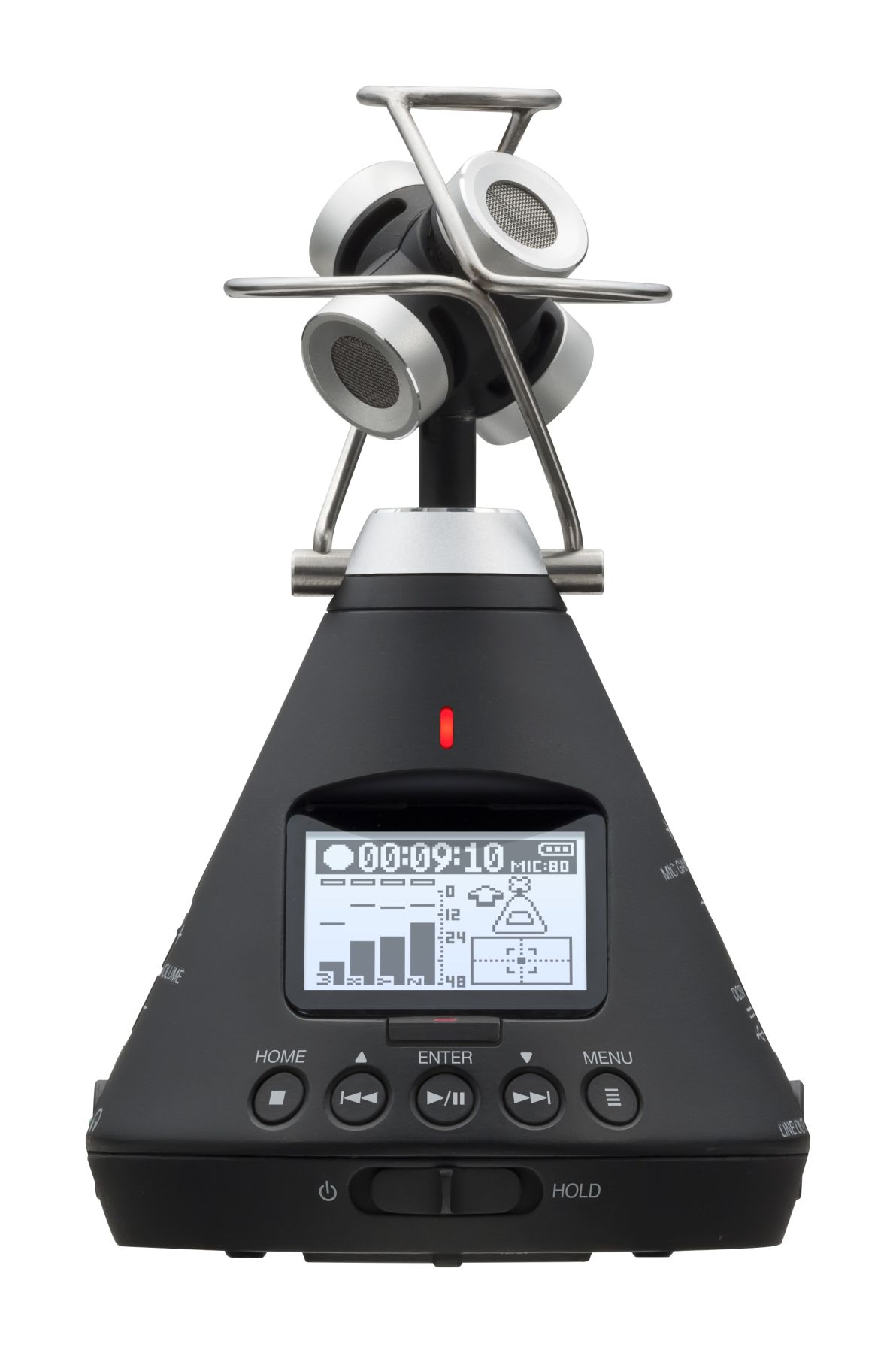 Він оснащений мікрофонним масивом Ambisonics з чотирма мікрофонними капсулами, який можна використовувати для запису, стереобінаурального або стандартного стереорежимів, що робить його придатним для детального відтворення студійних інструментальних ансамблів і сольних виступів, аудиторій, звукових ефектів, EFP та багато чого іншого. H3-VR підтримує запис об'ємного звуку в повній сфері з частотою до 24 біт/96 кГц, а також стерео/бінауральний моніторинг у режимі реального часу. Ви навіть можете експортувати записи Ambisonics у вигляді стереофонічних аудіофайлів у форматі 5.1 за допомогою безкоштовного програмного забезпечення Zoom Ambisonics Player (завантажуваного на комп'ютер з MacOS або Windows).
