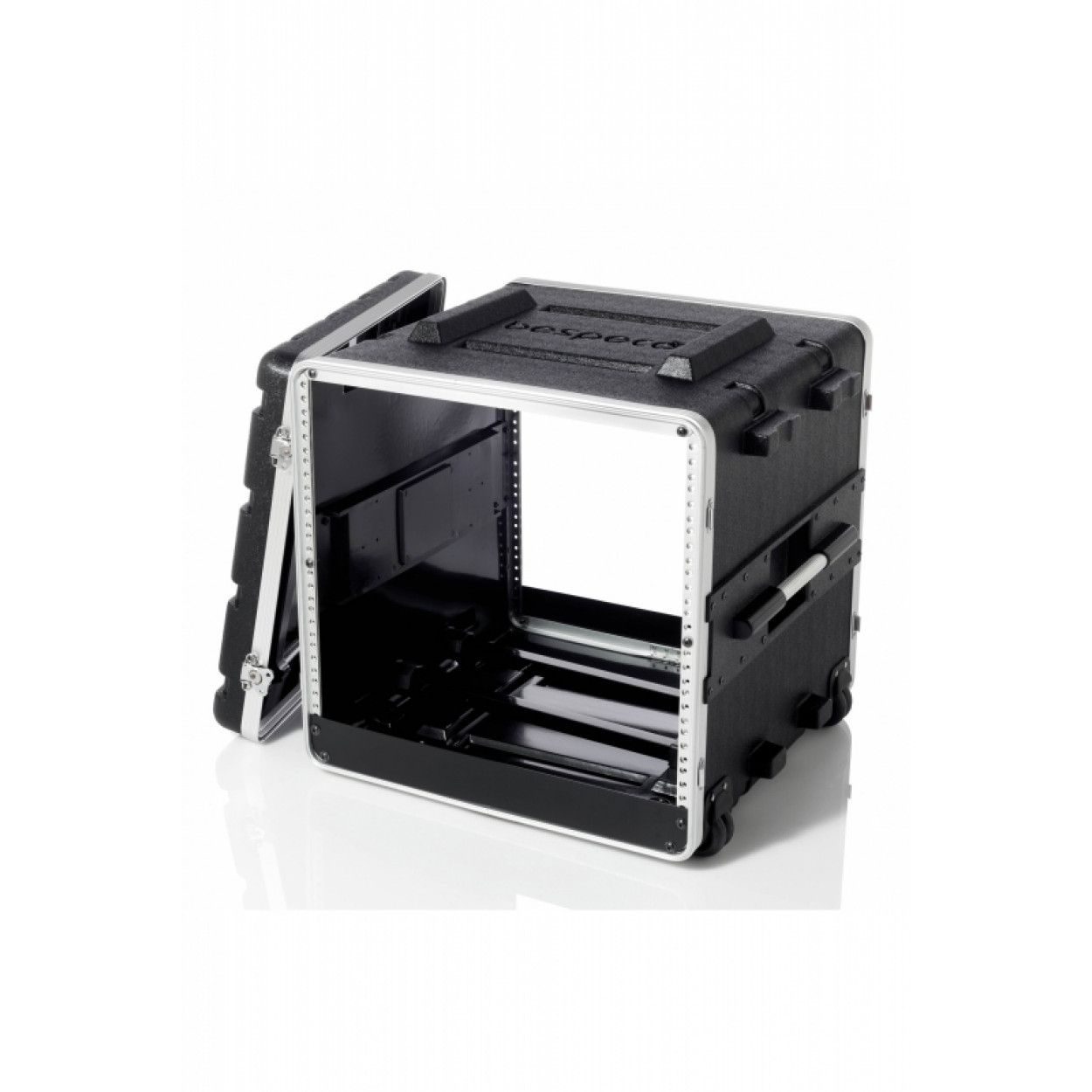 Bespeco RM10TEX - професійний рековий кейс з 2-ма знімними кришками, головною перевагою якого є наявність коліс і висувної ручки для зручного транспортування. Рековий розмір 10U. Замки "метелик". Дві бічні ручки для зручного перенесення. Кейс виготовлено з ударостійкого пластику.