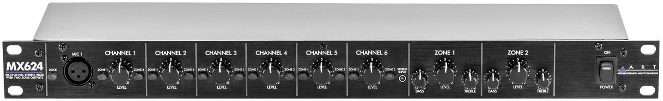 ART MX624 - є універсальним 6-канальним стерео мікшером з двома окремими зонами стереовиходів.