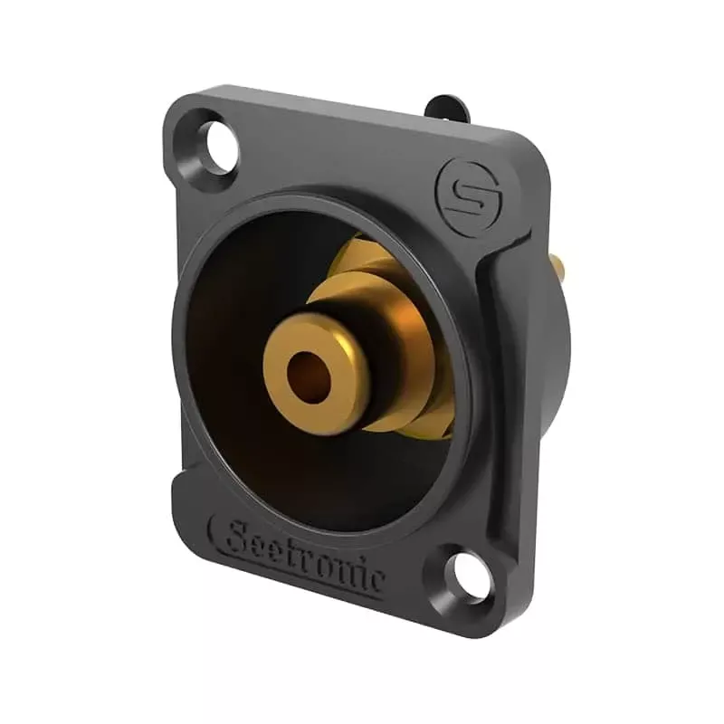 Гніздо RCA, металевий корпус чорний, контакти позолочені D-форма металевої оболонки з інсталяційними розмірами D-типу промислового стандарту забезпечує сумісність встановлення