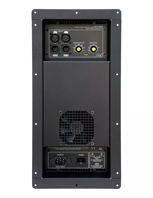 DX700B - вбудований професійний підсилювач потужності (підсилювальний модуль) класу D, призначений для установки в низькочастотні акустичні системи (сабвуфери).