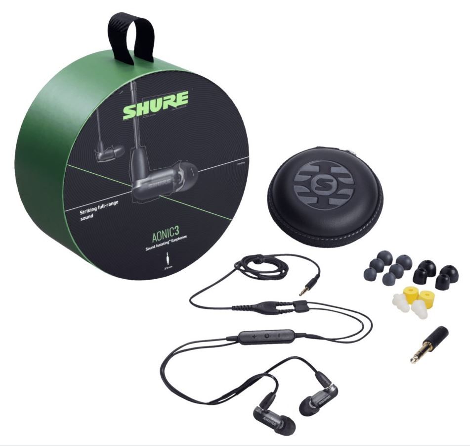 Shure AONIC 3 - Внутрішньоканальні навушники, дротові, закриті, 1 драйвер, опір 26 Ом, 20-18500 Гц, кнопки управління, мікрофон, знімний кабель із роз'ємами MMCX, вушні адаптери та чохол у комплекті.