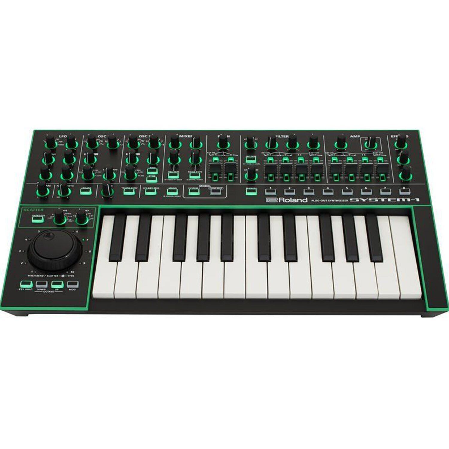 System-1 синтезатор отримав легендарне звучання Roland, отримав сучасний технологічний дизайн, деякі елементи управління оптимізованими для виступів, а також безліч індикаторів, ручки управління і слайдери.