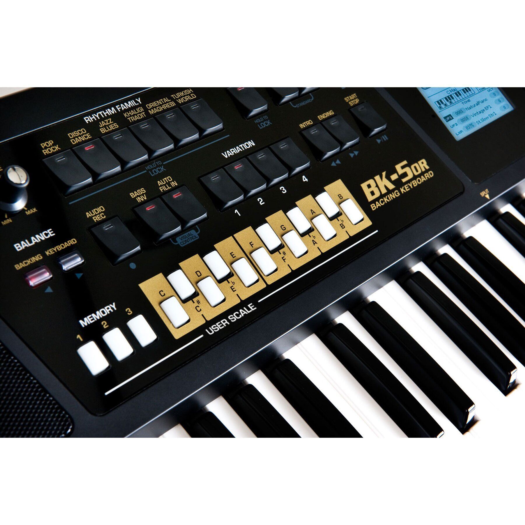 Roland BK-5 OR - містить десятки виразних і екзотичних нових інструментів, звуків барабанів і ритмів із Середнього Сходу, Туреччини та Північної Африки. Для того, щоб швидко і зручно керувати налаштуваннями ладів, BK-5 OR містить на передній панелі 12 кнопок, що дає змогу швидко керувати кожною нотою хроматичного звукоряду, а також 3 кнопки для збереження і моментального скидання. Вбудований Rhythm Composer дасть змогу моментально привнести ритм у Вашу музику. Додаткові ритми можуть бути імпортовані з пам'яті USB. Для відтворення барабанів може бути використано більше одного треку.