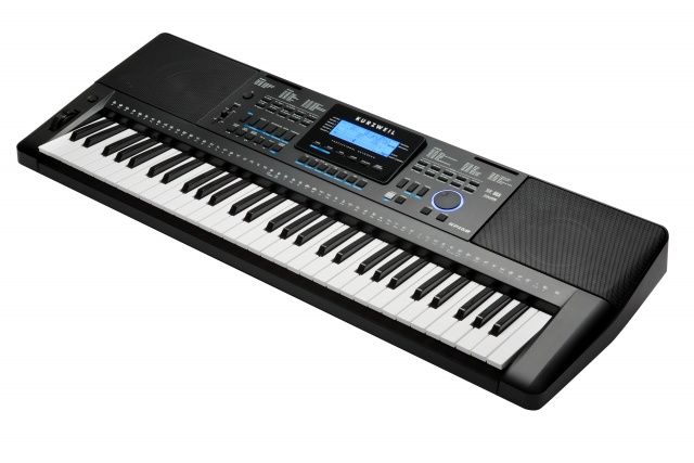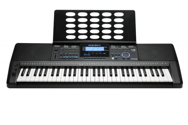 Kurzweil KP150 - Синтезатор, 61 клавіша, чутлива до натискання клавіатура, поліфонія 128 голосів, 200 стилів автоакомпанементу, розумна система навчання, ефекти, АС 70 Вт, USB, живлення від 6 батарейок АА або від блоку живлення, підставка для нот у комплекті.