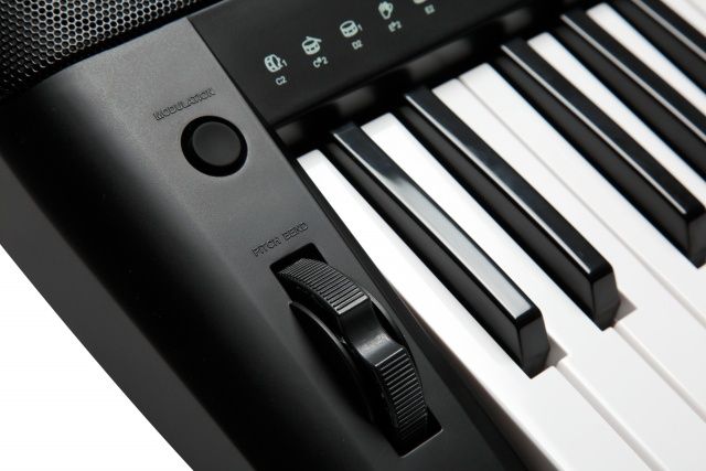Повнорозмірна, чутлива до швидкості натискання, синтезаторна клавіатура з 61 клавішею з регуляторами висоти тону і модуляції.