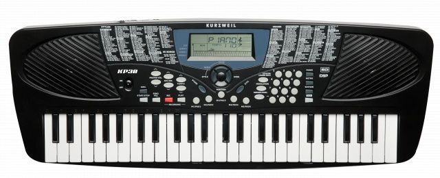 KURZWEIL KP30 - синтезатор з автоакомпанементом, 49 клавіш синтезаторного типу, мультифункціональний дисплей, 32-голосна поліфонія, 132 пресети, транспонування, 100 стилів автоакомпанементу.
