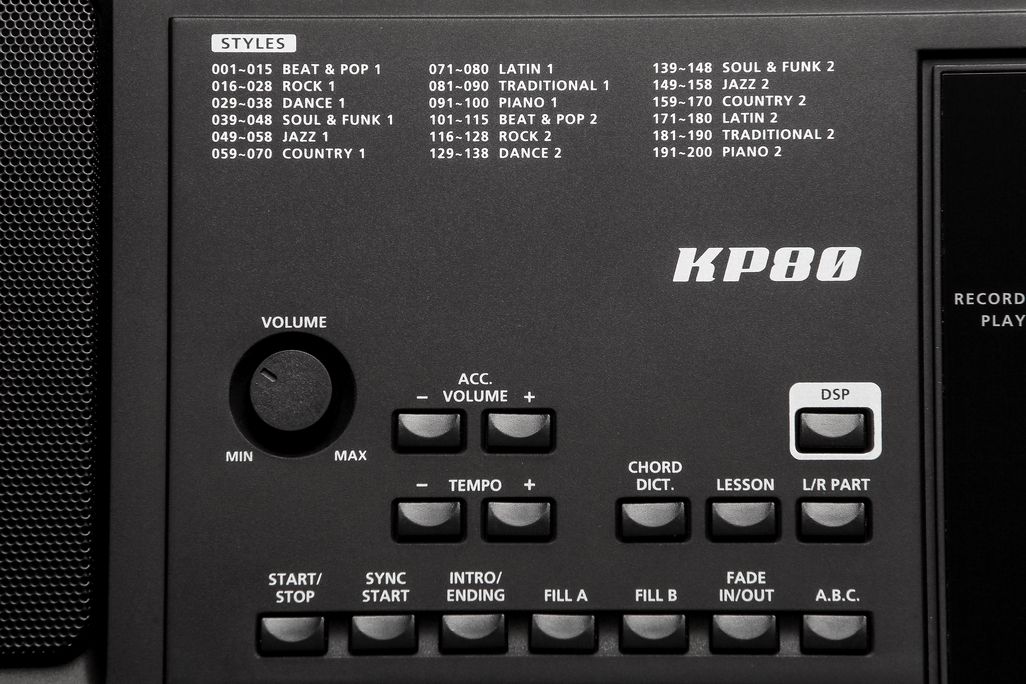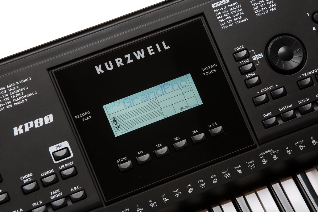 Kurzweil KP80 - синтезатор з автоакомпанементом. Повнорозмірна чутлива до швидкості синтезаторна клавіатура, 61 клавіша з модулями висоти тону і модуляції.