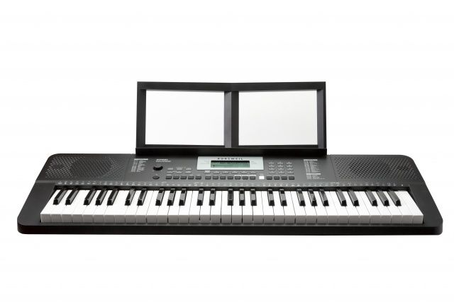 Розміщена в привабливому синтезаторному корпусі, модель поставляється в комплекті зі знімною підставкою для музики і вбудованою стереозвуковою системою.