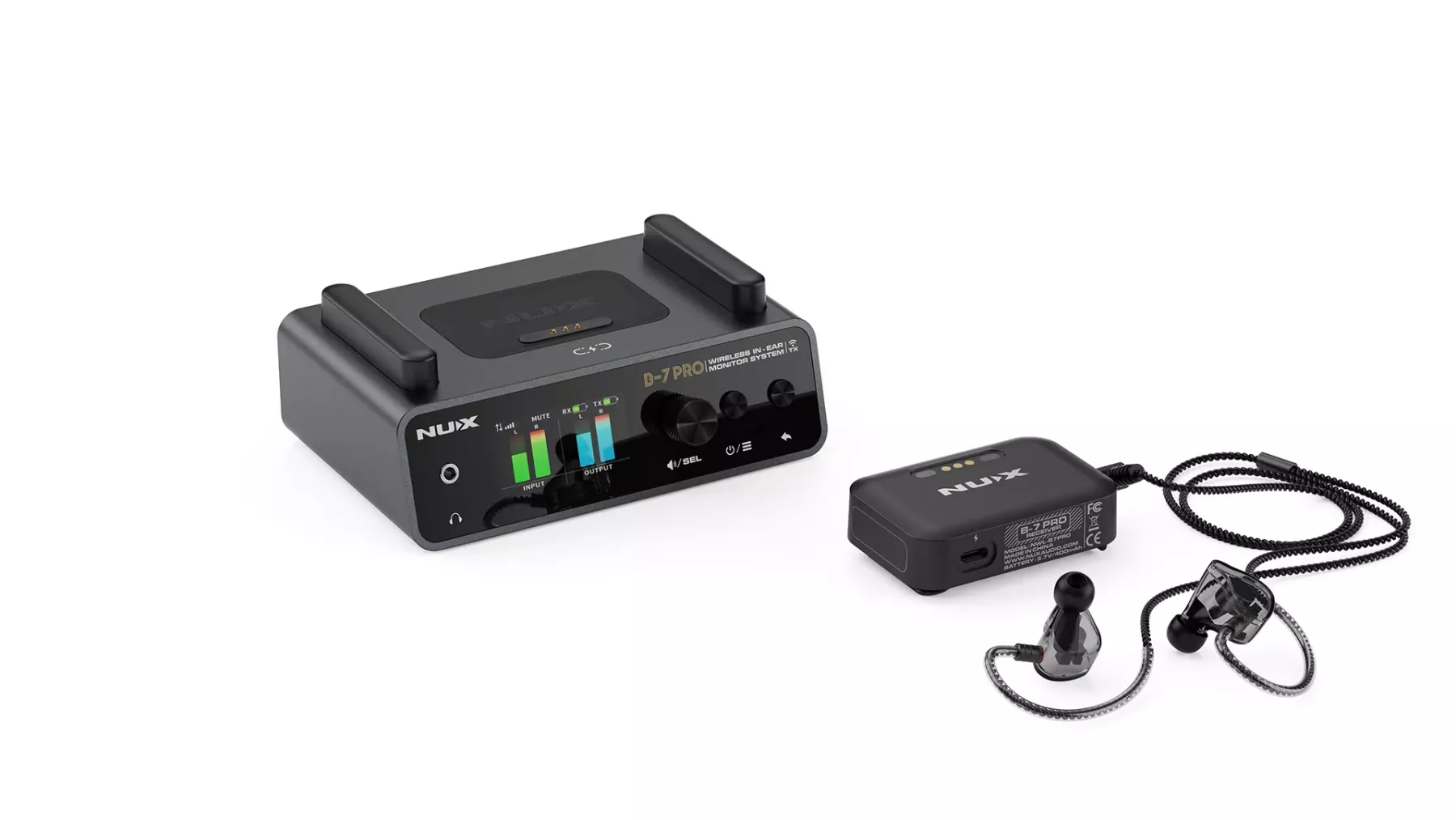 NUX B-7Pro (plus Fixture Clamp) - це персональна бездротова система внутрішньовушних моніторів з автоматичним налаштуванням, частотою мовлення 2,4 ГГц без перешкод і високоякісним стереозвуком 24 біт 48 кГц. Радіус дії становить до 50 метрів, водночас бездротова передача здійснюється з дуже низькою затримкою.