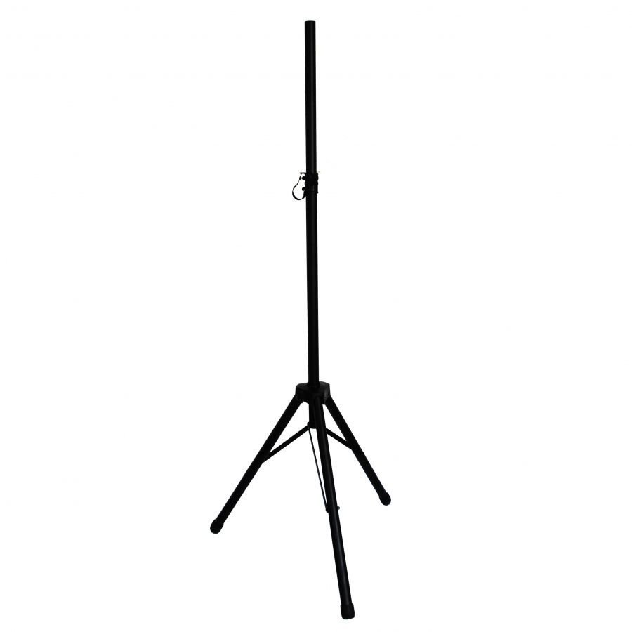 Якісна міцна стійка для акустичної системи, пряма. Вантажопідйомність 90 кг. Ідеально підходить для топів і невеликих широкосмугових акустичних систем. Можливість регулювання по висоті 1,25 - 2 м. 6 ступенів регулювання завдяки наявності шести отворів і надійно фіксованого штифта. Ноги оснащені гумовими насадками, що забезпечують надійність встановлення стійки і захист поверхні від подряпин. Матеріал: метал і пластик. Колір: чорний.