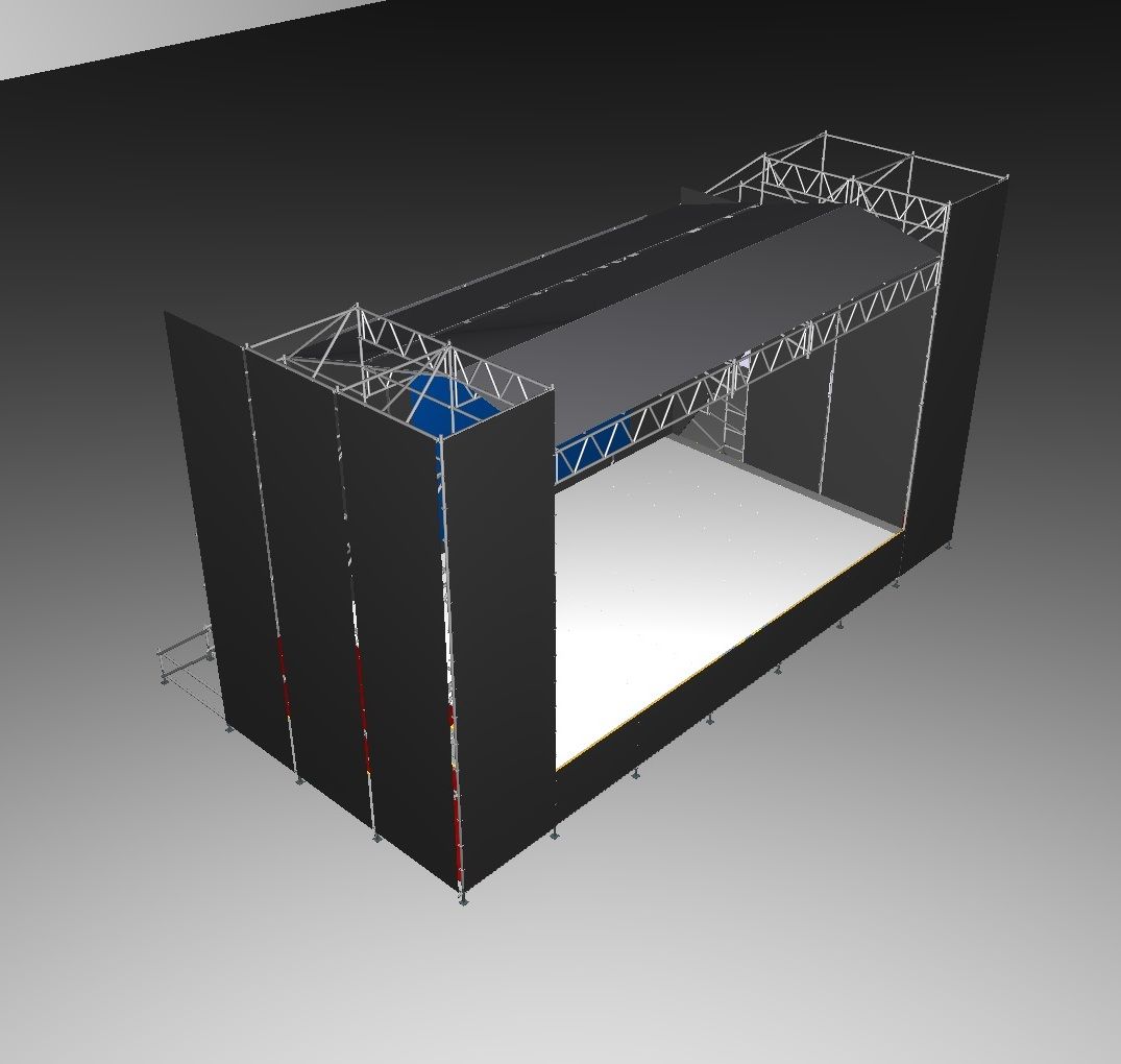 Ця розбірна сцена призначена для розміщення на ній людей, проведення великих розважальних заходів на відкритому повітрі та в приміщенні, а також - підвісу декорацій, світлового та звукового обладнання, відеоекранів. Це одна з найпопулярніших і найпростіших моделей. Вона незамінна для проведення невеликих ivent-заходів, корпоративних свят і виступу музичних колективів. Ідеально підходить для корпоративних і галузевих свят. Сцена швидко збирається і розбирається, займає мало місця під час перевезення. У комплект сцени входить режисерська рубка.