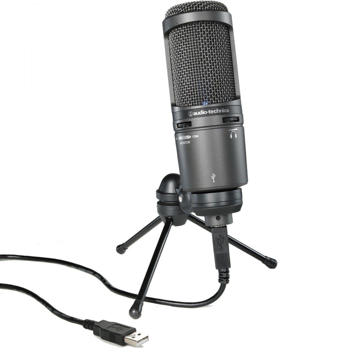 Audio-Technica AT2020USB+ кардіодний конденсаторний мікрофон, що призначений в основному для домашніх студій, виконання запису подкастів, запису коментарів і закадрового тексту. Працює мікрофон з усіма популярними комп'ютерними програмами і здійснює цифровий запис звуку з будь-яких джерел звуку.