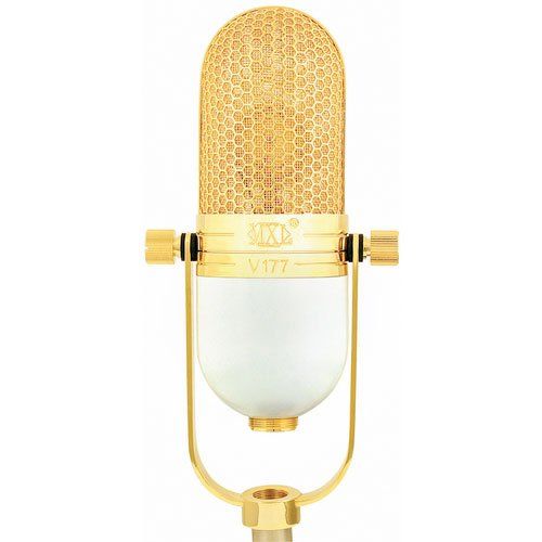 MXL V177 - конденсаторний кардіоїдний мікрофон з великою діафрагмою. Використовується для запису вокалу та інструментів (акустичних, клавішних, духових і струнних). Технічні характеристики: Частотний діапазон: 20Hz - 20 kHz Спрямованість: Cardioid Чутливість: -41 dB на 1 V / Pa Вихідний опір: 200 ohms Еквівалент шуму: -13db (A-weighted IEC 651) Max SPL for 0.1% THD: 145dB Лампа: 12AT7 Живлення: 48V phantom power (+/- 4V) Споживання: 6,6mA Розмір: 65mm x 180 mm Вага: 454гр Колір: біло-золотий