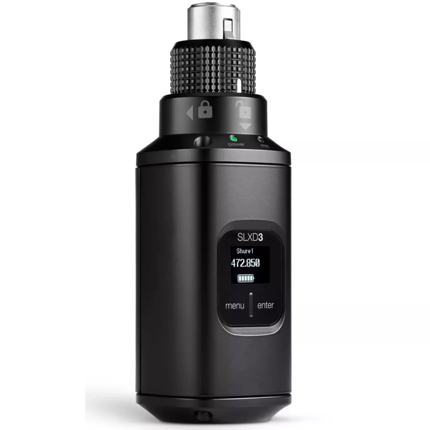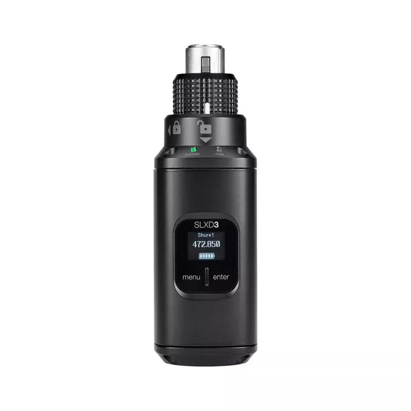 Цифровий бездротовий передавач SHURE SLXD3-H56, який працює у діапазоні 518-562 MHz. Plug-On перетворює будь-яке джерело XLR, включно з динамічними і конденсаторними мікрофонами, для використання як бездротового передавача SLX-D. Завдяки запатентованому стопорному кільцю, що забезпечує надійне з'єднання без хитань, SLXD3 передає 24-бітний цифровий звук з будь-якого джерела XLR на цифрові бездротові приймачі SLXD4 і SLXD5 через надійне радіочастотне з'єднання. Використовуйте ІЧ-синхронізацію для простого і швидкого сполучення передавачів з обраним вами бездротовим приймачем SLX-D. Яскравий OLED-екран на передній панелі відображає основні стани системи, включно із зарядом батареї та частотою передавання.