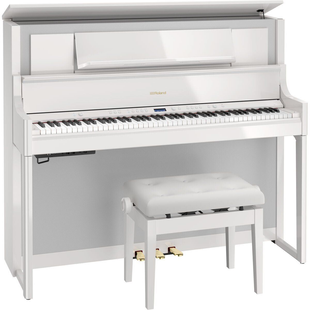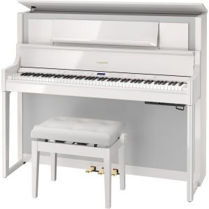 Цифрове фортепіано Roland LX-708 PW - топова і найостанніша модель у лінійці LX-700. Від попередніх відрізняється значним високим корпусом і кришкою, що відкривається, які створюють оптимальне поширення звуку і максимально імітують гру на традиційному акустичному роялі. Для посилення ефекту в лицьовій частині корпусу є спеціальний С-подібний виріз.
