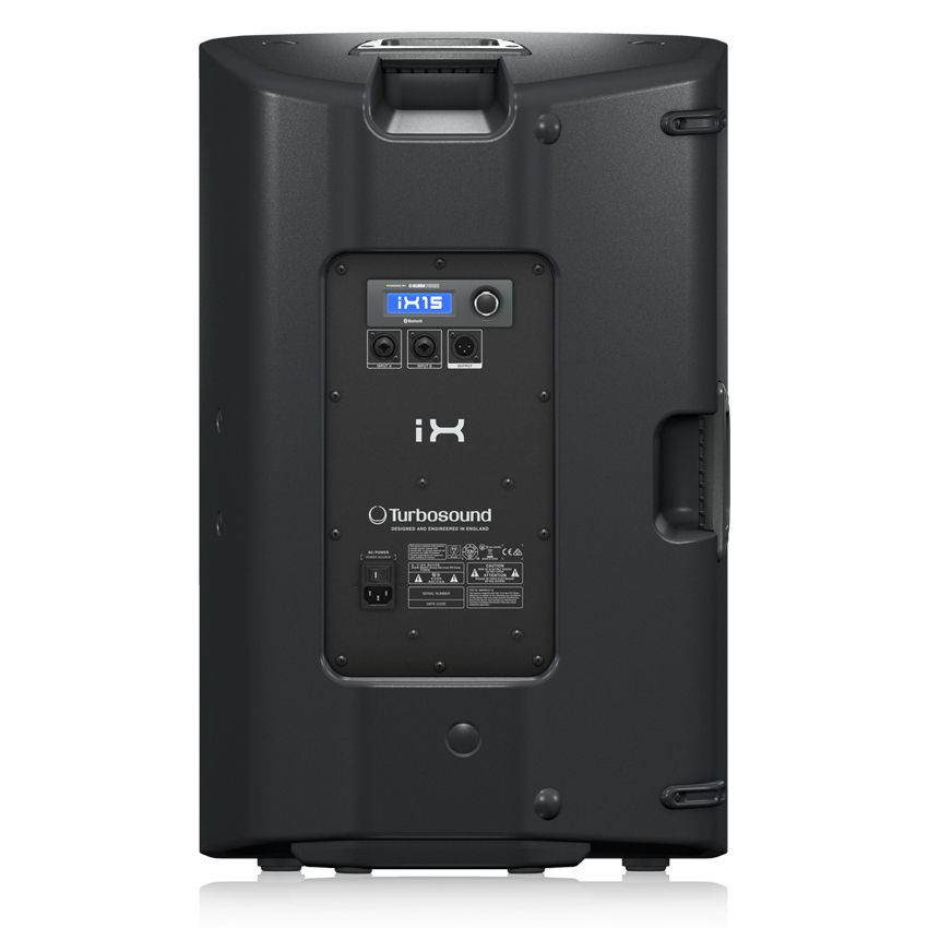 На задній панелі iX15 розташовано повнофункціональний інтерфейс, що складається з LCD-дисплея і поворотного енкодера для наочного відображення рівня, еквалайзера і пресетів частотного діапазону, коли акустична система стоїть до Вас заднім боком або використовується як монітор. На додаток до двох комбінованих балансових XLR/джек входів, передбачено XLR вихід для послідовного підключення інших активних гучномовців або активного сабвуфера.
