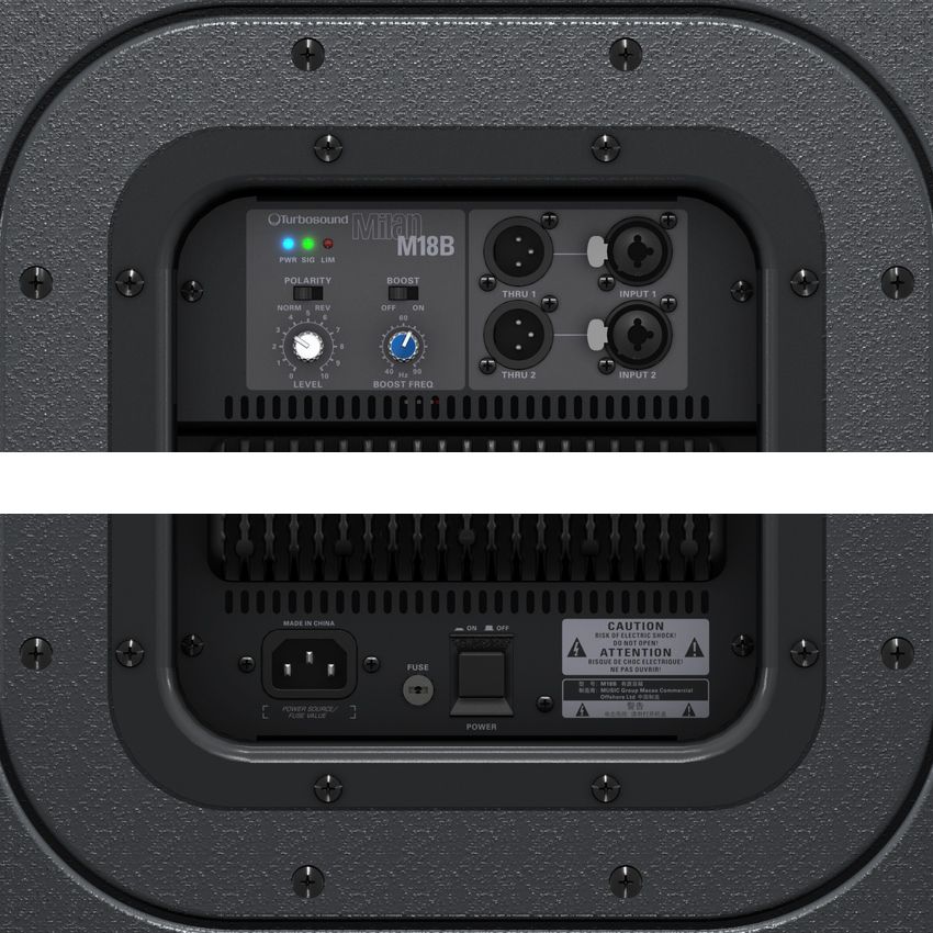 MILAN M18B - це високоякісний активний сабвуфер із 18-дюймовим динаміком, потужністю 2200 Вт і звуковим тиском 134 дБ. Він оснащений підсилювачем класу D. До того ж, він має вбудований DSP-процесор від провідної компанії KLARK TEKNIK. Сабвуфери Milan мають аналоговий кросовер з додатковим перебудовуваним фільтром BOOST, який дає змогу підкреслити частоти в діапазоні 40 - 90 Гц.