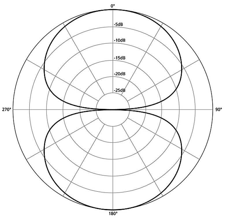 Как легко понять из названия, микрофоны с диаграммой направленности в форме восьмерки принимают звук только спереди и сзади и почти нечувствительны по бокам. Благодаря этой особенности, микрофоны данной направленности широко используется для стереофонической записи. Кроме того, благодаря минимальной боковой чувствительности, они могут использоваться для записи двух вокалистов в один момент времени без добавления в запись посторонних боковых шумов.