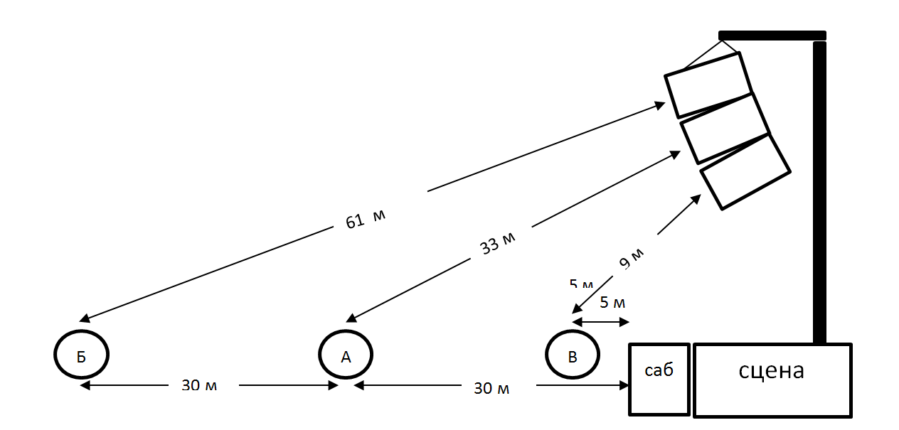 2. Разница в звуковом давлении между первыми и последними рядами может достигать 26 Дб.