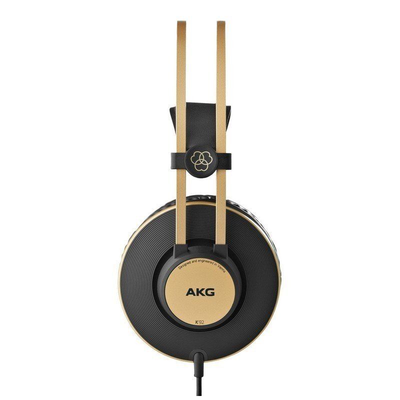 AKG K92 – наушники закрытого типа с симпатичным черно-золотистым дизайном. Они имеют удобную конструкцию и малый вес, поэтому отличаются повышенной комфортностью. В тональном балансе AKG K92 отдают некоторое предпочтение нижней части спектра, в остальном их звучание можно назвать разборчивым, натуральным и весьма качественным, учитывая бюджетную категорию. Несмотря на профессиональный статус, пусть и самый начальный, модель AKG K92 не нуждается в мощном усилителе и легко сработается с любой портативной аудиотехникой.