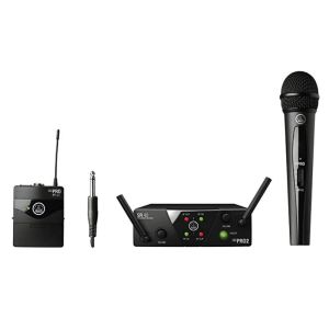 AKG WMS40 Mini2 Mix Set BD ISM2/3 – вокальная/инструментальная радиосистема, гарантирующая превосходный звук и легка в использовании при непобедимом соотношении цена/качество. Система включает SR 40 Mini2 приемник, один РТ 40 Mini поясной передатчик, НТ 40 MINI ручной передатчик, два инструментальных кабеля, универсальный блок питания с US/UK/EU адаптерами и две АА батарейки.