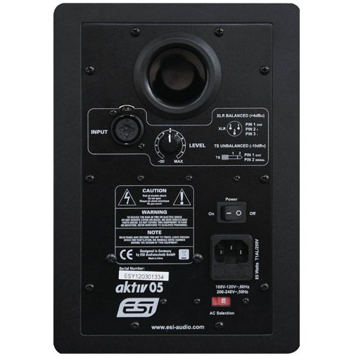 ESI Aktiv 05 может похвастаться практически идеально ровной частотной характеристикой низких частот. Новый шелковый твитер купольной формы и высококачественный кевларовый 5-дюймовый НЧ динамик дают идеальное звучание в области нижней середины, что является основным усовершенствованием в сравнении с бумажными или полипропиленовыми драйверами, которые используются в большинстве аналогичных мониторов. ESI не был первым производителем, кто использовал кевлар для студийных мониторов данной ценовой категории в качестве материала диффузоров низкочастотного динамика. Многие другие производители копируют идеи от ESI, тем не менее Aktiv 05 обладает некоторыми элементами, которые делают звучание лучше в отличии от ближайших претендентов. Новая настройка всех компонентов выполненная инженерами ESI в Германии, а также полностью новая конструкция кроссовера выводят ESI Aktiv 05 на новый качественный уровень среди студийных мониторов.