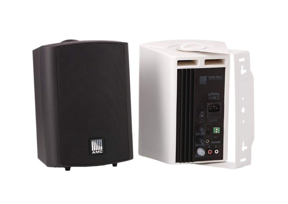 AMC POWER BOX 5 - Компактная настенная акустическая система, полуактивная, 2х полосная 5.25" + 1", мощность 2х20 Вт - 8 Ом, SPL 104 дБ, 80 Гц - 20 кГц, чувствительность 87 dB, встроенный 2-полосный эквалайзер, корпус пластик (цена за 2 шт).