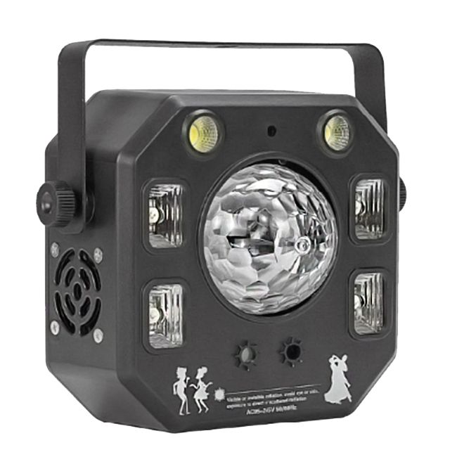 Free COLOR MINI FX 4 Flower - хорошо подойдет для создания светового эффекта на небольших мероприятиях, в прибор установлено 15 Вт RGBW светодиод для световых эффектов, 4 ульрафиолетовых LED по 3 Вт, 2 LED по 10 Вт стробоскоп, красный и зеленый лазеры.