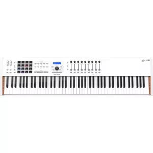 Arturia KeyLab 88 MkII является универсальным MIDI-контроллером, который включает в себя 88 чувствительных к скорости клавиш с послекасанием и молоточковой механикой Fatar TP/100LR, поворотный энкодер, 9 дополнительных энкодеров, 9 регуляторов, 16 пэдов с RGB подсветкой, сенсорных и чувствительных к давлению, колесо модуляции и колесо pich-bend.