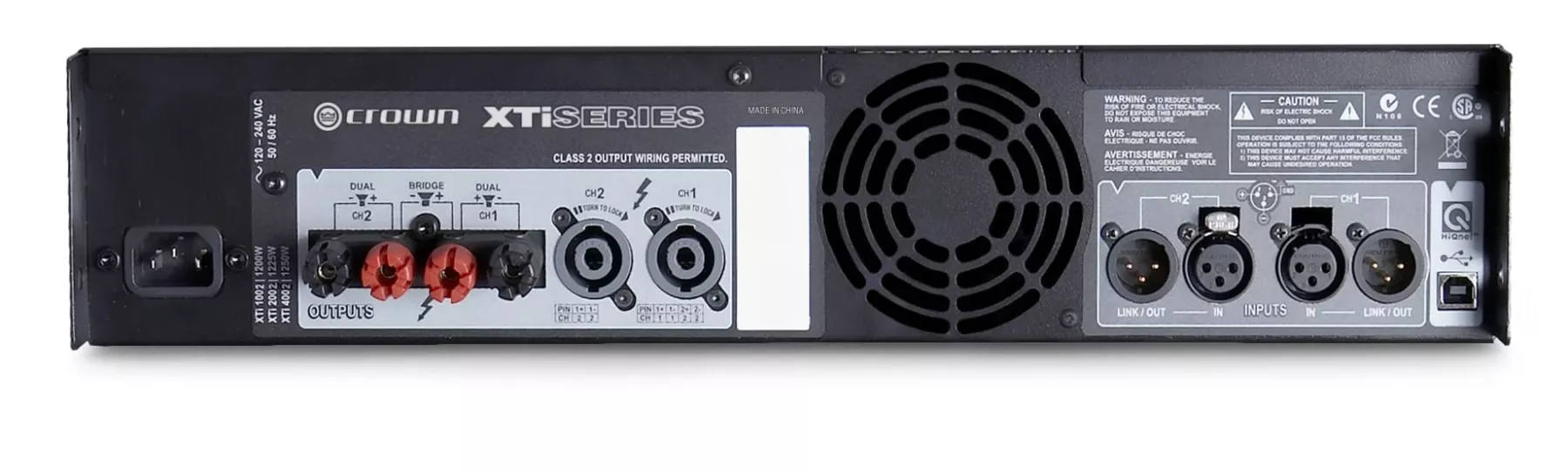 Для подключения источников звука Crown XTi4002 оснащён балансными входами XLR, которые обеспечивают высококачественный сигнал без шумов и помех. Выходы Speakon и клеммы предназначены для надежного подключения акустических систем, гарантируя устойчивую работу и безопасность при эксплуатации.