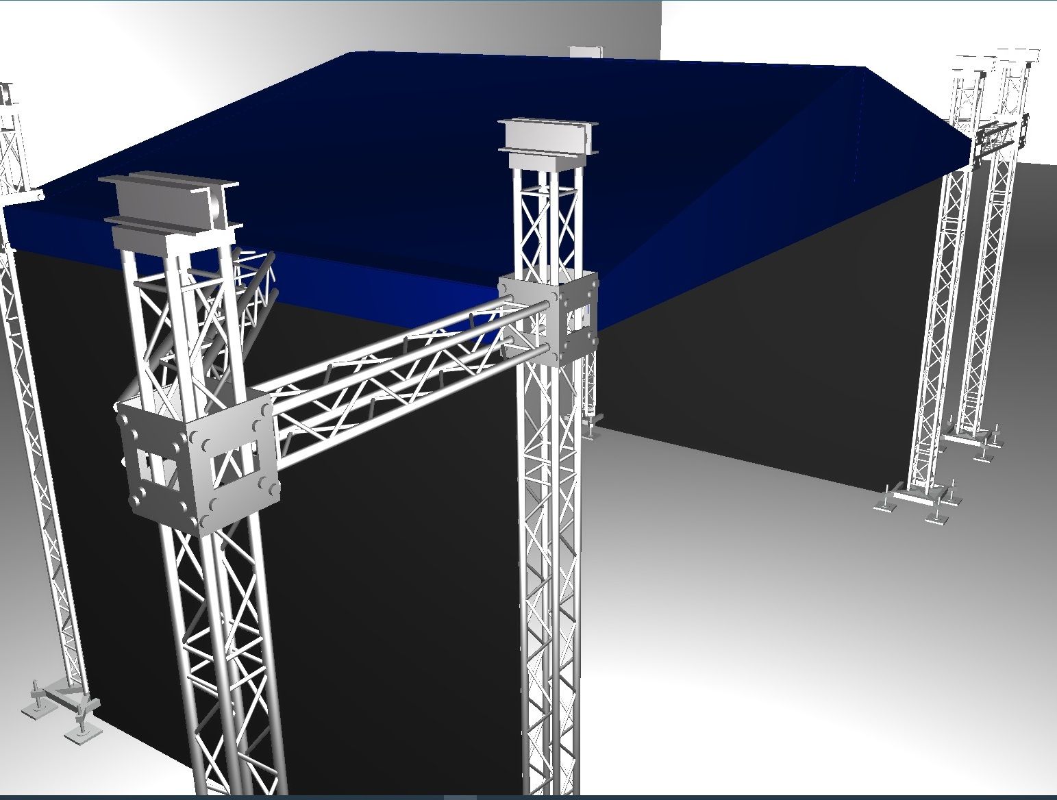 Данная мобильная крыша предназначена для размещения под ней людей, проведения крупных развлекательных мероприятий на открытом воздухе и в помещении, а так же - подвеса декораций, светового и звукового оборудования.