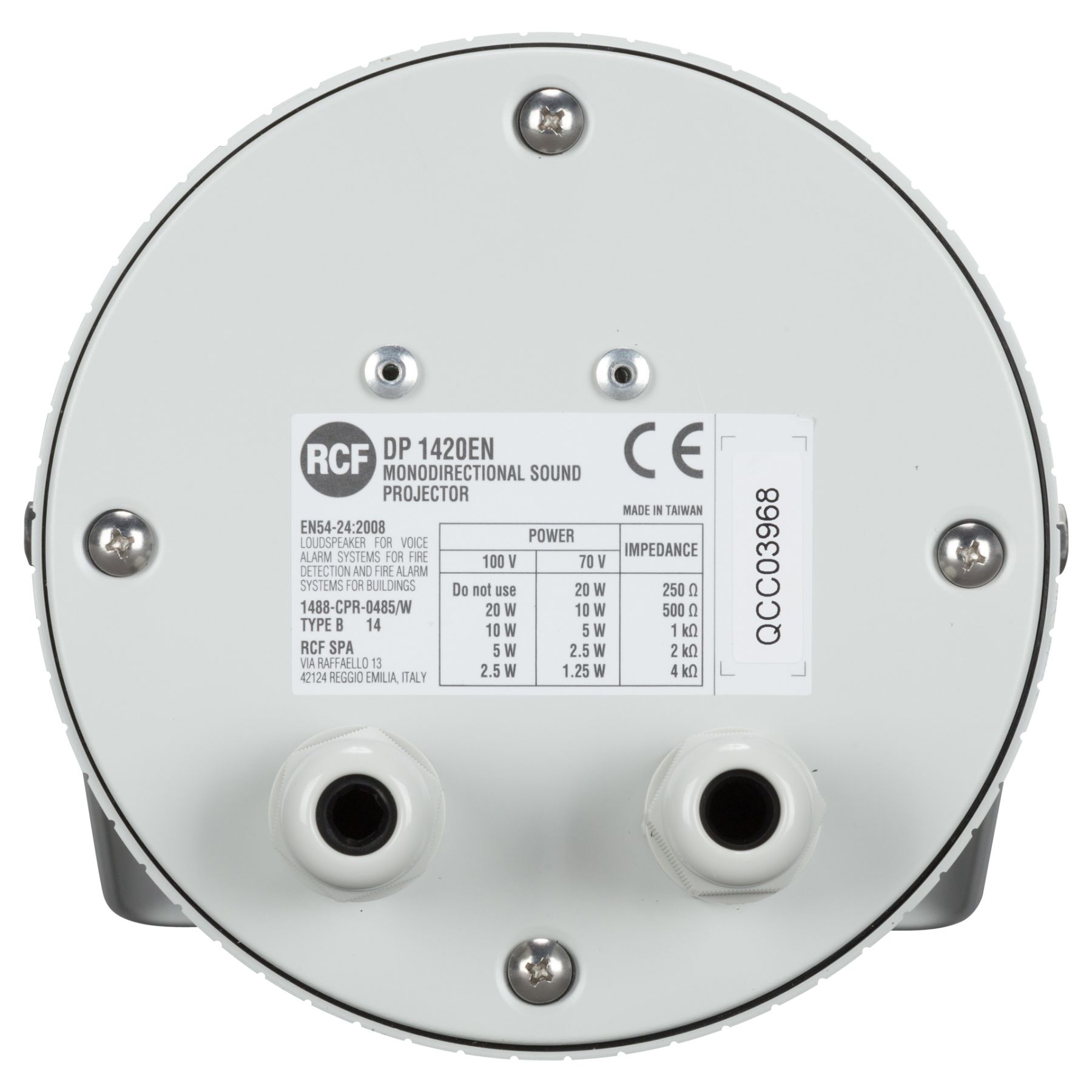 RCF DP1420EN - прожектор с креплением для настенного или потолочного монтажа. Акустическая система содержит стильный вид, проста в установке и подходит для коммерческих и промышленных помещений, таких как вокзалы, супермаркеты, бассейны, складские помещения, автостоянки, станций метро, универмаги, торговые центры и буть где, там где возникает потребность в высококачественных звучании.