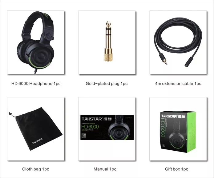 TAKSTAR HD6000 студийные наушники закрытого типа; АЧХ 10 Гц - 25 кГц; Кабель 1,2м + удлинитель 4 м; В комплекте 6,3мм. адаптер-джек и чехол;